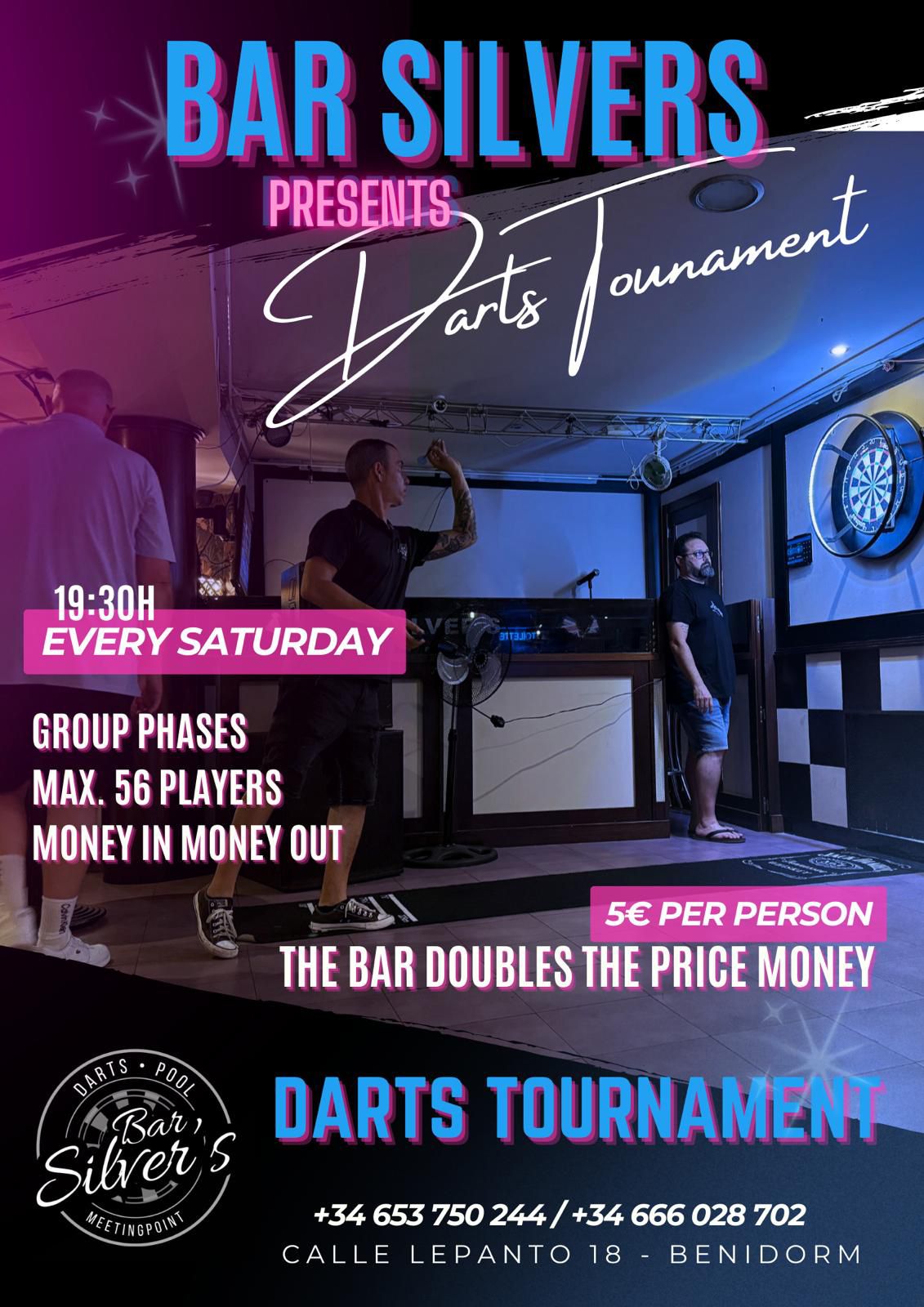 SILVERS hosts Darts Tournaments every Saturday!If you're looking for fun, friendly competition in the heart of Benidorm, join us every Saturday evening for one of our regular